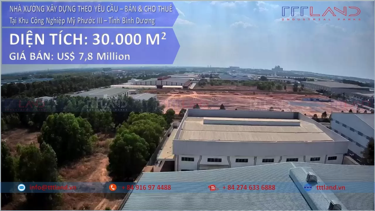 Bán Nhà Xưởng Xây Dựng Theo Yêu Cầu tại Khu Công Nghiệp My Phước 3 – TTTLAND
